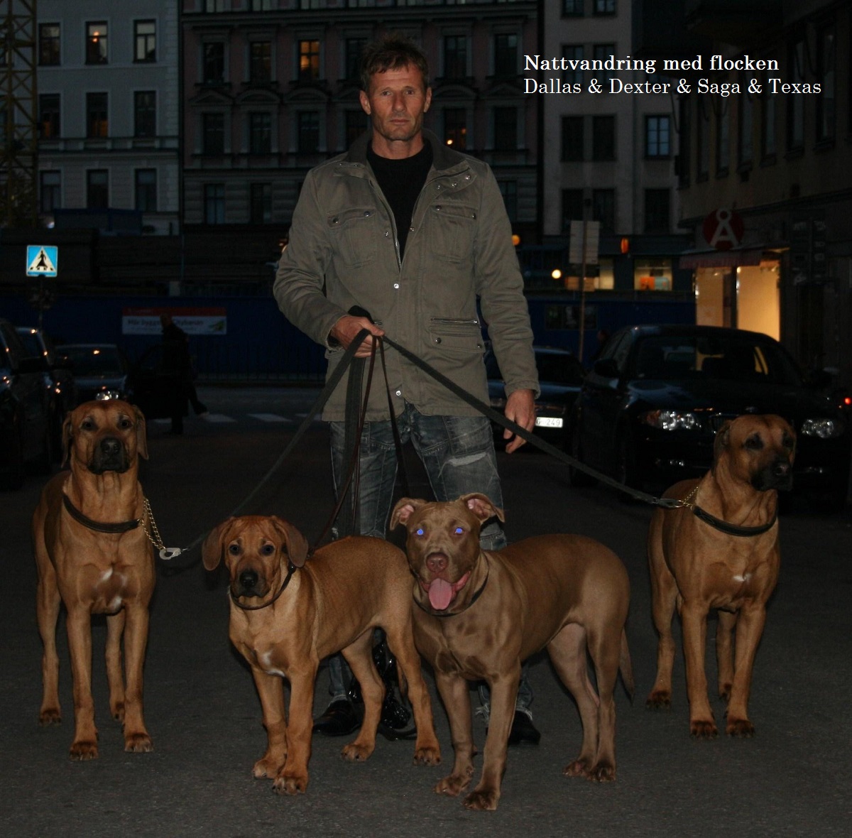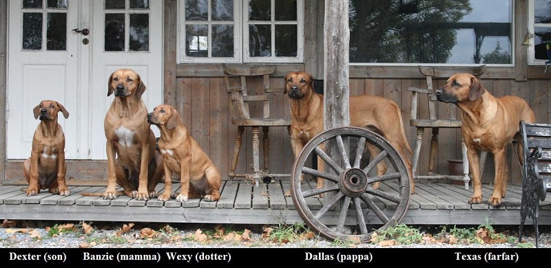 Ovan fem videos återger uppväxten för en Ridgeback valp från 9 veckor till vuxen hund. Vanliga frågor runt rasen är baserat på dess rykte om att vara vass. Jag kan intyga att det helt beror på den enskilda individen. Alla hundar har sin egen karaktär. Dallas skiljer sig markant från sin pappa Texas. För att återge vad jag avser med vass rekommenderar jag video 2. Dallas är endast 16 veckor och trygga stabila pappa Texas sätter ramarna för en mycket intensiv valp. Videon går från lugnare lekformer och eskalerar stegvis till att Dallas uppvisar ett vassare beteende. Att stimulera och forma detta som ledare kräver sitt salt. Betänk om ni vill ta Texas roll under denna period. Kan intyga att tack vare Texas hjälp har jag fått en välartad och trygg andra hund.
