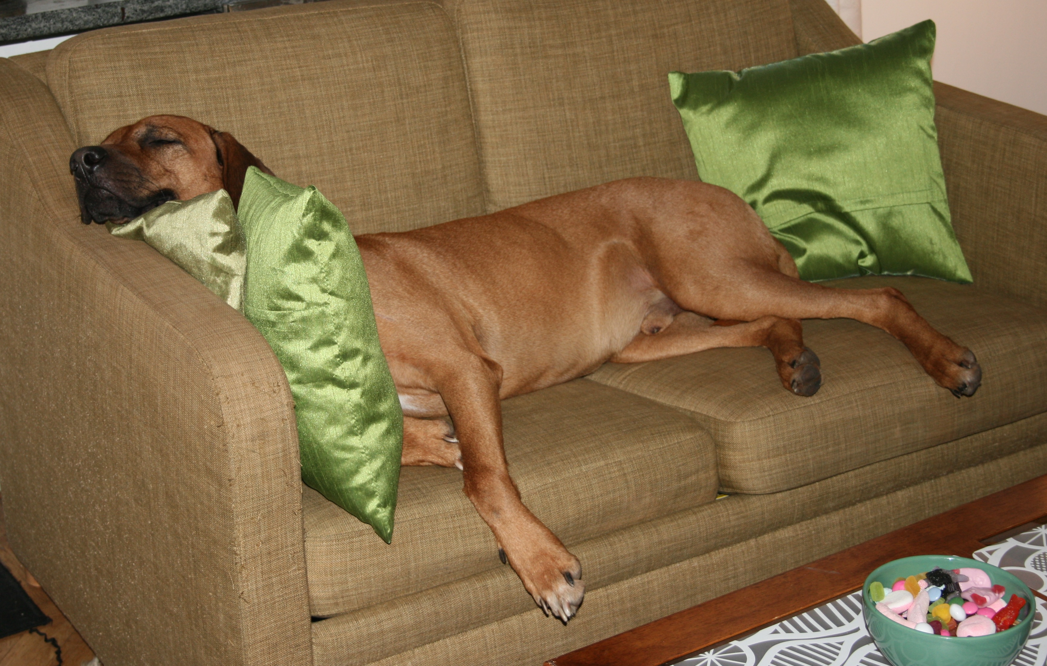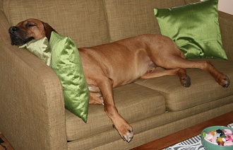 Ridgeback älskar en bekväm tillvaro, den tillbringar stor tid hoprullad i soffor, eller om tillfälle ges, utsträckt på sin ägares säng.