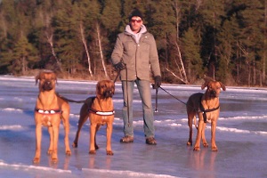 Att välja en Rhodesian Ridgeback bör vara ett medvetet val. Hundarna föredrar en aktiv livsstil. Det är inget för bekväma. Personligen är jag fysisk till naturen och lever i symbios med mina hundar. Promenad för mig är inte alltid vad andra menar. Den totala friheten finner jag under våra längre vandringar. Jag brukar inte välja dom traditionella stråken utan håller mig heltst utanför. Under vintertid är dom öppna isarna perfekta. Hundarna kan löpa fritt över stora områden. En skön solig vintersöndag förlägger jag gärna promenden från innerstan t/r Bogesund eller motsvarande 4-5 mil. Växlar både områden och distans för ökad stimulans. Dagliga rundor ligger endast runt milen.