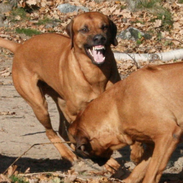 Andra talande exempel är när okända dominanta handhundar utmanar i en öppen miljö, där alla hundar springer lösa. Mina två Ridgeback söker aldrig upp eller skapar konfrontationer med andra hundar utan anledning. Som boken tydligt beskriver finns det relativt lite intresse för andra hundar och till att skapa onödiga konfrontationer. Det som skiljer är att Rhodesian Ridgeback är mycket signalstark och inläsande. Dom backar inte för angripare eller individer som inkräktar eller kränker dess territorie.