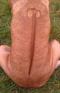 En mindre viktig extreör detalj enligt min mening men ytterst signifikant för namnet Rhodesian Ridgeback är denna mothårs växande ridge på hundens rygg. Den skall vara lång och markant med jämn samlad bredd utan avvikelser samt med två spegelvända utsökta väl markerade virvlar. Det är få hundar som har en perfekt ridge. Tidigare avlivades valpar som saknade rigde. Enligt min mening är goda mentala egenskaper att prioritera framför extreöra detaljer.