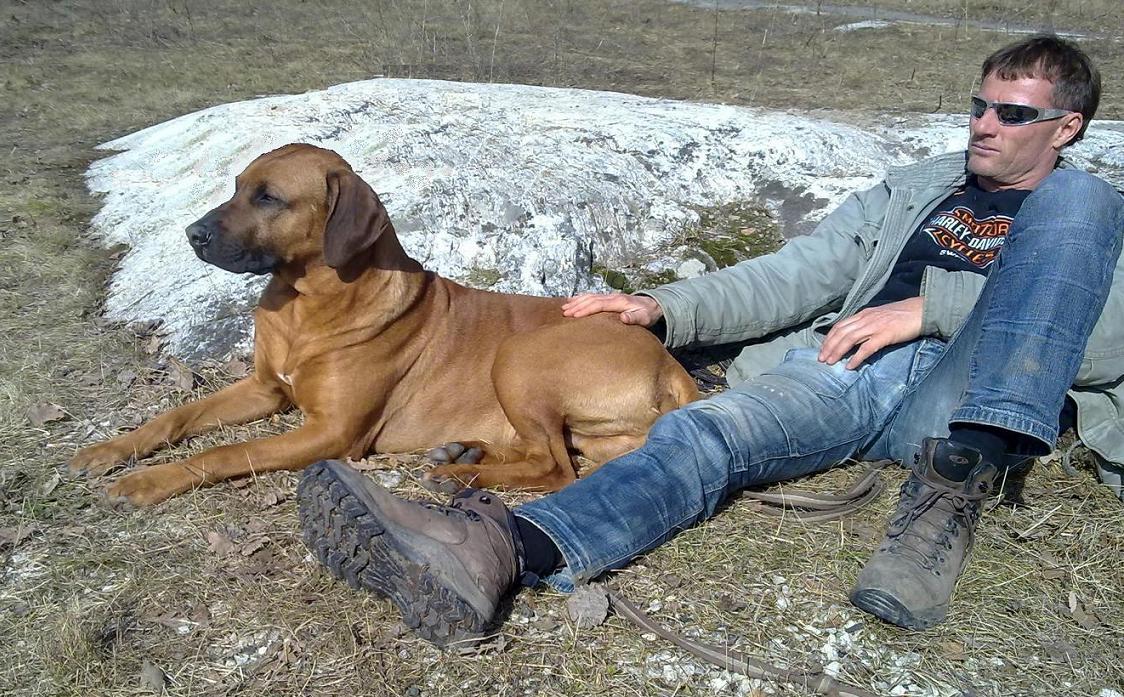 Personligen går jag minst dryga milen per dag i varierad terräng. Rhodesian Ridgeback är ingen hund för soffpotatisar!