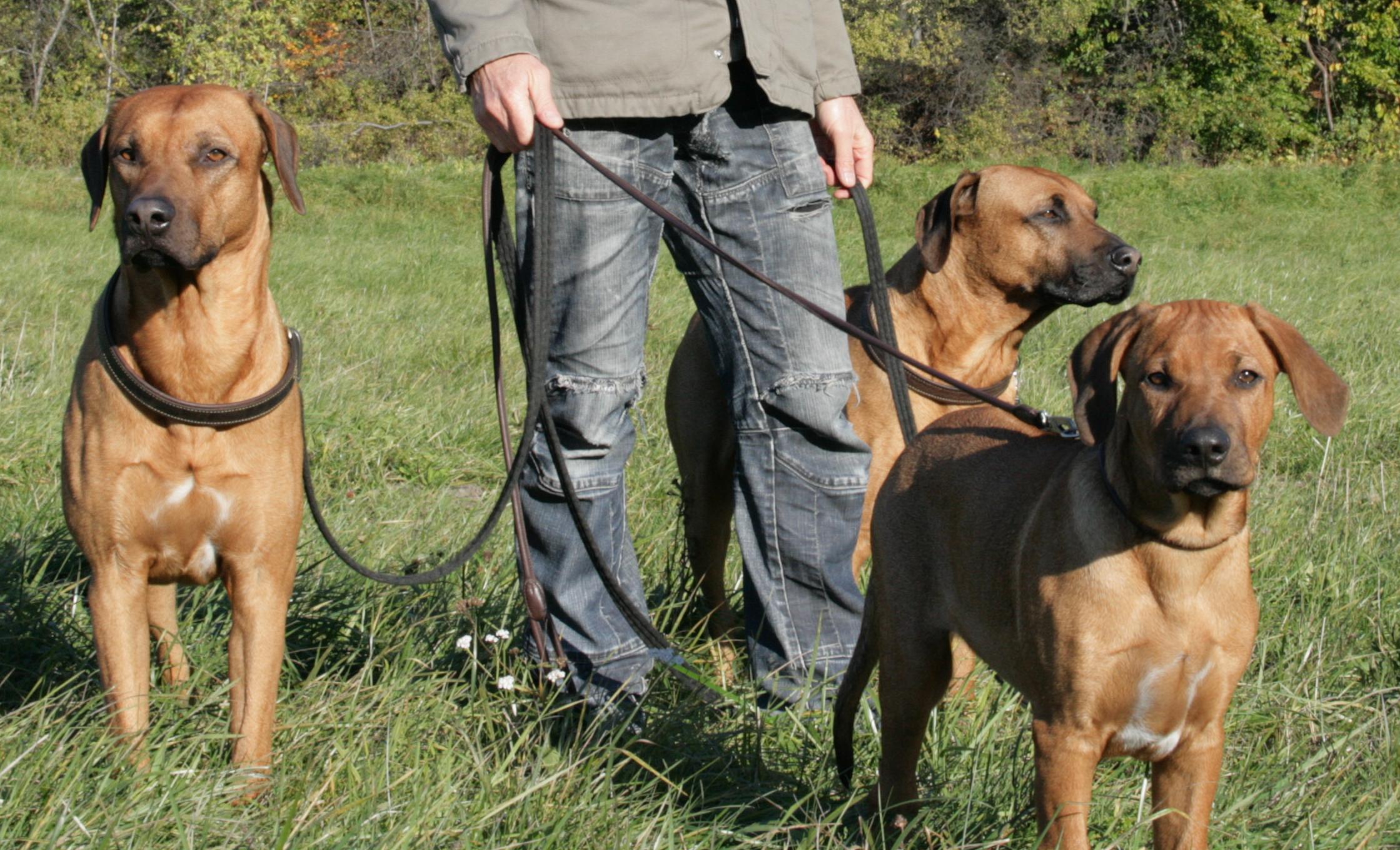 Rhodesian Ridgeback är arbetshundar med stort intresse för jakt och egen förmåga till samverka. Hundarna tänker själva och kräver få kommandon. Dallas agerar förtrupp och kallar på Texas vid behov. Hundarna återkommer med automatik och har aldrig sprungit bort eller fastnat på vilt.